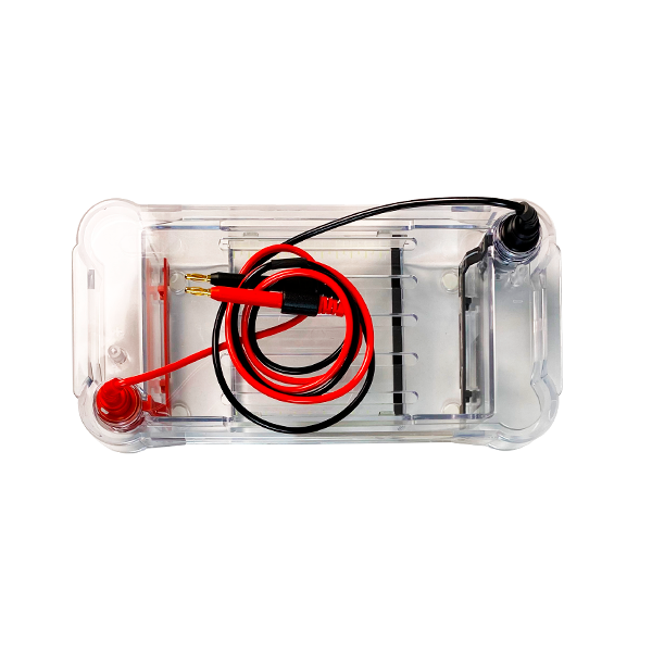 Tanque de electroforesis horizontal multifuncional. Es un sistema para separar ácidos nucleicos en un gel de agarosa sometido a un campo eléctrico, donde las moléculas se separan por carga y peso molecular. Su innovador diseño presenta cuatro tamaños de gel diferentes que se adaptan a diferentes número de muestra. Equipamiento esencial en